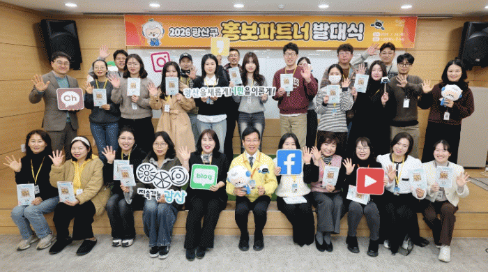 [¹Ìµð¾îÀü³² Á¦°¥´ëÁ¾ ±âÀÚ]±¤ÁÖ ±¤»ê±¸°¡ 24ÀÏ ¼Ò¼ÈÄ·ÆÛ½º ¿Â ±¤ÁÖ¿¡¼ 2026³â ±¤»ê±¸ È«º¸ ÆÄÆ®³Ê ¹ß´ë½ÄÀ» °³ÃÖÇß´Ù. ¹ß´ë½ÄÀº È«º¸ÆÄÆ®³Ê·Î ¼±Á¤µÈ 40¸í(⡤Á¦ÀÛÀÚ(Å©¸®¿¡ÀÌÅÍ) 10¸í, ¼Ò¼ÈÁö±â´Ü 30¸í)¿¡°Ô À§ÃËÀåÀ» Àü´ÞÇϰí, ¿¬¡¦