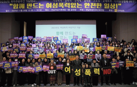 [¹Ìµð¾îÀü³² Á¦°¥´ëÁ¾ ±âÀÚ]Àü¶ó³²µµ´Â 12¿ù 1ÀϱîÁöÀÎ 4ÁÖ°£ÀÇ ¿©¼º Æø·Â Ãß¹æÁÖ°£À» ¸Â¾Æ 29ÀÏ Àü³²¿©¼º°¡Á·Àç´Ü °ø¿¬Àå¿¡¼ ±â³äÇà»ç¸¦ °³ÃÖÇß´Ù. Çà»ç¿¡¼± ¡®ÇÔ²² ¸¸µå´Â ¿©¼º Æø·Â ¾ø´Â ¾ÈÀüÇÑ ÀÏ»ó¡¯À» ÁÖÁ¦·Î ¿©¼º Æø·Â¿¡ ´ëÇÑ ¡¦