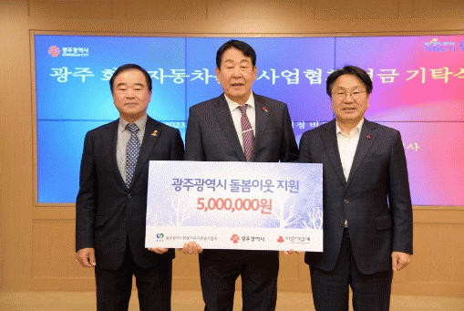 [¹Ìµð¾îÀü³² Á¦°¥´ëÁ¾ ±âÀÚ]±¤ÁÖ±¤¿ª½Ã´Â 28ÀÏ ±¤ÁÖ½Ãȹ°ÀÚµ¿Â÷¿î¼Û»ç¾÷Çùȸ ȸ¿øµéÀÌ ¼º±Ý 500¸¸¿øÀ» ±âŹÇß´Ù°í ¹àÇû´Ù. À̳¯ ½Ãû ºñÁî´Ï½º·ë¿¡¼ ¿¸° ±âŹ½Ä¿¡´Â °±âÁ¤ ½ÃÀåÀ» ºñ·ÔÇØ ±¤ÁÖȹ°ÀÚµ¿Â÷¿î¼Û»ç¾÷Çùȸ ÃÖ¹«Áø ȸÀå°ú¡¦