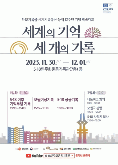 [¹Ìµð¾îÀü³² Á¦°¥´ëÁ¾ ±âÀÚ]5¡¤18¹ÎÁÖȿ±â·Ï°üÀº ¿À´Â 30ÀϺÎÅÍ 12¿ù1ÀϱîÁö ±â·Ï°ü 7Ãþ ´Ù¸ñÀû°´ç¿¡¼ ¡®5¡¤18±â·Ï¹° ¼¼°è±â·ÏÀ¯»ê µîÀç 12Áֳ⠱â³ä Çмú´ëȸ¡¯¸¦ °³ÃÖÇÑ´Ù. ±¤ÁÖ½Ã¿Í ¹®ÈÀçûÀÌ ÁÖÃÖÇϰí Àü³²´ë 5¡¤18¿¬±¸¼Ò, ±¤¡¦
