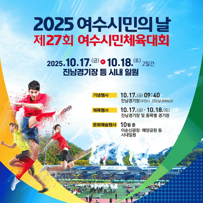 [¹Ìµð¾îÀü³² ÀüÇü¼º ±âÀÚ]¿©¼ö½Ã´Â ¿À´Â 10¿ù 17ÀÏ(±Ý)ºÎÅÍ 18ÀÏ(Åä)±îÁö ÀÌÆ²°£ Áø³²°æ±âÀå ÀÏ¿ø¿¡¼ ¡®2025 ¿©¼ö½Ã¹ÎÀÇ ³¯¡¯ ±â³äÇà»ç¸¦ °³ÃÖÇÑ´Ù. ¿ÃÇØ ¿©¼ö½Ã¹ÎÀÇ ³¯Àº ´Ü¼øÇÑ ±â³äÇà»ç¸¦ ³Ñ¾î ½Ã¹ÎÀÌ Á÷Á¢ ü°¨Çϰí Âü¿©ÇÏ´Â ¡®ÃàÁ¦¡¦