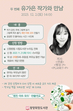 [¹Ìµð¾îÀü³² ÀÓ¼º¿Ï ±âÀÚ]±¤¾çÈñ¸Áµµ¼°üÀÌ 12¿ù 2ÀÏ Åä¿äÀÏ ¿ÀÈÄ 2½Ã¿¡ ¾î¸°ÀÌ °¡Á·À» ´ë»óÀ¸·Î ¡®À¯°¡Àº ÀÛ°¡¿ÍÀÇ ¸¸³²¡¯À» ¿î¿µÇÑ´Ù°í ¹àÇû´Ù. À¯°¡Àº ÀÛ°¡´Â Áö³ 10¿ùºÎÅÍ Èñ¸Áµµ¼°ü ²Þ½Ï°¶·¯¸®¿¡¼ '±×¸²Ã¥À¸·Î ¿¬°á'À̶õ ÁÖÁ¦·Î¡¦