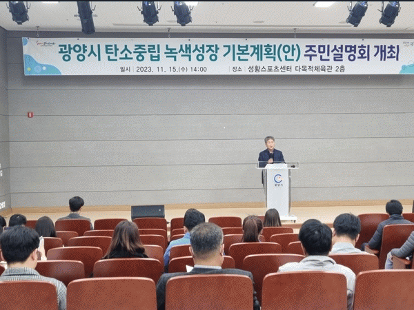 [¹Ìµð¾îÀü³² ÀÓ¼º¿Ï ±âÀÚ]±¤¾ç½Ã´Â 15ÀÏ ¼ºÈ²½ºÆ÷Ã÷¼¾ÅÍ¿¡¼ ÁÖ¹Î, ȯ°æ´Üü, ±â¾÷ÀÎ, °ü°è °ø¹«¿ø µî ¾à 70¸íÀÌ Âü¼®ÇÑ °¡¿îµ¥ ¡®±¤¾ç½Ã ź¼ÒÁ߸³ ³ì»ö¼ºÀå ±âº»°èȹ¡¯ Ãʾȿ¡ ´ëÇÑ Áֹμ³¸íȸ¸¦ °³ÃÖÇß´Ù. ¡®±¤¾ç½Ã ź¼ÒÁ߸³ ³ì»ö¼ºÀ塦
