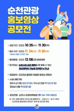 [¹Ìµð¾îÀü³² ÀÓ¼º¿Ï ±âÀÚ]¼øÃµ½Ã´Â ¼øÃµ½ÃÀÇ ¼ûÀº ¸Å·ÂÀ» ¾Ë¸®±â À§ÇØ ¿À´Â 11¿ù 30ÀϱîÁö ¼øÃµ°ü±¤ È«º¸¿µ»ó °ø¸ðÀüÀ» °³ÃÖÇÑ´Ù. À̹ø °ø¸ðÀüÀº Áö¿ª ¹× ¿¬·ÉÁ¦ÇÑ ¾øÀÌ Àü ±¹¹Î ´©±¸³ª Âü¿©ÇÒ ¼ö ÀÖÀ¸¸ç, ¼øÃµ °ü±¤ÀÇ ´Ù¾çÇÑ ¸Å·ÂÀ» ¾Ë¡¦