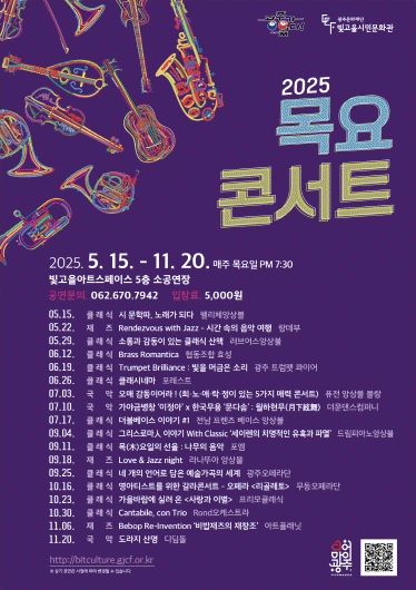 [¹Ìµð¾îÀü³² Á¦°¥´ëÁ¾ ±âÀÚ]±¤ÁÖ¹®ÈÀç´Ü(´ëÇ¥ÀÌ»ç ³ëÈñ¿ë)Àº ¿À´Â 10¿ù 16ÀÏ, 23ÀÏ, 30ÀÏ ¸ñ¿äÀÏ Àú³á 7½Ã 30ºÐ, ºû°íÀ»¾ÆÆ®½ºÆäÀ̽º 5Ãþ ¼Ò°ø¿¬Àå¿¡¼ ¡®10¿ùÀÇ ¸ñ¿äÄܼƮ¡¯¸¦ °³ÃÖÇÑ´Ù°í ¹àÇû´Ù. À̹ø °ø¿¬Àº ¡ã14ȸÂ÷ ¡®¹«µî¿ÀÆä¶ó¡¦