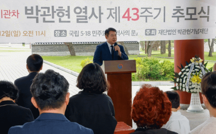 [¹Ìµð¾îÀü³² Á¦°¥´ëÁ¾ ±âÀÚ]ÀÌÁ¤¼± ±¤Áֽñ³À°°¨ÀÌ 12ÀÏ ±¹¸³5¡¤18¹ÎÁÖ¹¦Áö ¡®¿ª»çÀÇ ¹®¡¯ ¾Õ¿¡¼ ¿¸° ¡®¹ÎÁÖÈÀÇ »õº®±â°üÂ÷ ¹Ú°üÇö ¿»ç Á¦43ÁÖ±â Ã߸ð½Ä¡¯¿¡ Âü¼®Çß´Ù. À̳¯ Ã߸ð½Ä¿¡´Â ÀÌÁ¤¼± ±³À°°¨À» ºñ·ÔÇØ, °±âÁ¤ ±¤ÁÖ±¤¿ª½ÃÀ塦