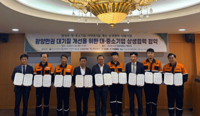[¹Ìµð¾îÀü³² Á¦°¥´ëÁ¾ ±âÀÚ]Àü³²³ì»öȯ°æÁö¿ø¼¾ÅÍ´Â 9¿ù 30ÀÏ ¢ßÆ÷½ºÄÚ ±¤¾çÁ¦Ã¶¼Ò ¹é¿î´ë¿¡¼ ¡®±¤¾ç¸¸±Ç ´ë±âÁú °³¼±À» À§ÇÑ ´ë¡¤Áß¼Ò±â¾÷ »ó»ýÇù·Â Çù¾à¡¯À» ü°áÇß´Ù. À̹ø Çù¾àÀº ȯ°æºÎ¿¡¼ ÃßÁøÇÏ´Â ¡®´ë¡¤Áß¡¤¼Ò±â¾÷ Áö¿ª´ë±âÁú¡¦