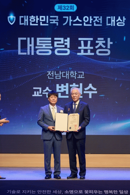 [¹Ìµð¾îÀü³² Á¦°¥´ëÁ¾ ±âÀÚ]Àü³²´ëÇб³ Ȱø»ý¸í°øÇаú º¯Çå¼ö ±³¼ö°¡ »ê¾÷Åë»óÀÚ¿øºÎ¿¡¼ ÁÖÃÖÇϰí Çѱ¹°¡½º¾ÈÀü°ø»ç(»çÀå ¹Ú°æ±¹)°¡ ÁÖ°üÇÑ ¡®Á¦32ȸ ´ëÇѹα¹ °¡½º¾ÈÀü ´ë»ó¡¯¿¡¼ ´ëÅë·É ǥâÀÇ ¿µ¿¹¸¦ ¾È¾Ò´Ù. À̹ø ¼ö»óÀº ¿©¼ö»ê´Ü¡¦