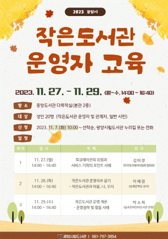 [¹Ìµð¾îÀü³² ÀÓ¼º¿Ï ±âÀÚ]±¤¾ç½Ã¸³µµ¼°üÀº ¿À´Â 27ÀϺÎÅÍ 29ÀϱîÁö 3Àϰ£ ÃÑ 3ȸ¿¡ °ÉÃÄ Áß¾Óµµ¼°ü ´Ù¸ñÀû½Ç¿¡¼ ÀÛÀºµµ¼°ü ¿î¿µÀÚ¸¦ ´ë»óÀ¸·Î ¿ª·® °È ±³À°À» ½Ç½ÃÇÑ´Ù. Áö¿ª ³» 35°³¼ÒÀÇ ÀÛÀºµµ¼°ü ¿î¿µÀÚ°¡ Âü¿©ÇÏ´Â À̹ø ¡®ÀÛ¡¦
