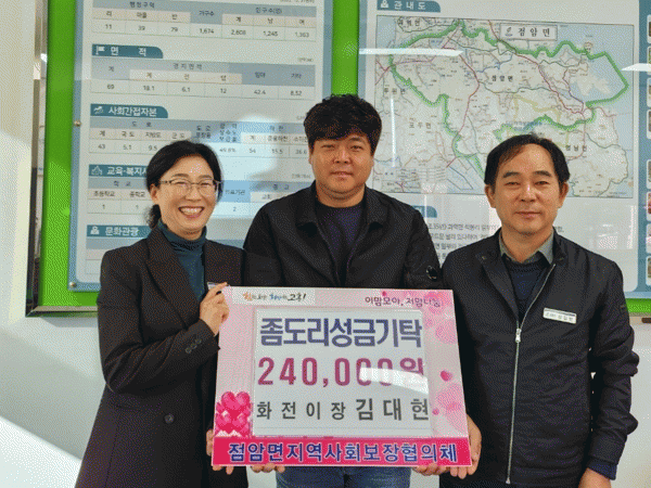 [¹Ìµð¾îÀü³² Á¦°¥´ëÁ¾ ±âÀÚ]°íÈﱺ Á¡¾Ï¸éÀº Áö³ 8ÀÏ ¸éÀå½Ç¿¡¼ Á¡»ç¸ð 1¹é¸¸ ¿ø, ÈÀüÀÌÀå ±è´ëÇö 24¸¸ ¿ø, ´ë½ÂÁ¾ÇÕ°³¹ß ´ëÇ¥ ±è¼ºÅ 20¸¸ ¿øÀÇ °íÈï»ç¶û Á»µµ¸® ¼º±ÝÀ» ±âŹ¹Þ¾Ò´Ù. ±âŹÀںеéÀº ¡°¸Å¿ù ¾î·Á¿î ÀÌ¿ôµéÀ» »ì¶ãÈ÷ º¸¡¦