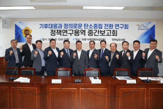 [¹Ìµð¾îÀü³² Á¦°¥´ëÁ¾ ±âÀÚ]Àü³²µµÀÇȸ ÀÇ¿ø ¿¬±¸´Üü ¡®±âÈÄ´ëÀÀ°ú Á¤ÀǷοî ź¼ÒÁ߸³ Àüȯ ¿¬±¸È¸¡¯´Â 11¿ù 1ÀÏ Àü³²µµÀÇȸ ´Ù¸ñÀûȸÀǽǿ¡¼ ¡®Åº¼ÒÁ߸³ Àüȯ¿¡ µû¸¥ ÀÏÀÚ¸® °¨¼Ò ´ëÀÀ ¹æ¾È ¼ö¸³À» À§ÇÑ Á¤Ã¥ ¿¬±¸¡¯¿¡ ´ëÇÑ Á¤Ã¥¿¬±¸¿ë¡¦