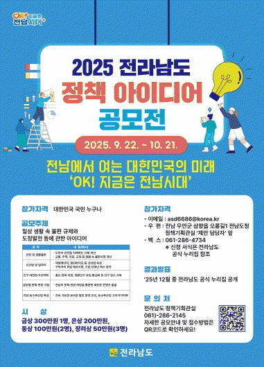 [¹Ìµð¾îÀü³² Á¦°¥´ëÁ¾ ±âÀÚ]Àü¶ó³²µµ°¡ »õ Á¤ºÎÀÇ ½Ç¿ëÁÖÀÇ ±âÁ¶¿¡ ¸ÂÃç ¡®»ýȰ ¼Ó ºÒÆíÀ» ã°í À̸¦ °³¼±ÇÒ, Áö¿ªÀÇ ¹Ì·¡¸¦ ¸Ô¿© »ì¸± Á¤Ã¥¡¯À» ÁÖÁ¦·Î ¡®2025³â Àü¶ó³²µµ Á¤Ã¥ ¾ÆÀ̵ð¾î °ø¸ðÀü¡¯À» °³ÃÖÇÑ´Ù. °ø¸ðÀüÀº ´ëÇѹα¹ ±¹¹ÎÀÌ¡¦