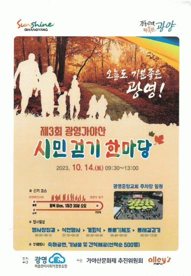 [¹Ìµð¾îÀü³² ÀÓ¼º¿Ï ±âÀÚ]±¤¿µµ¿Àº ¿À´Â 14ÀÏ ±¤¿µÁß¾Ó±³È¸ ÀÏ¿ø¿¡¼ ¡®Á¦3ȸ °¡¾ß»ê ½Ã¹Î °È±â ÇѸ¶´ç Çà»ç¡¯¸¦ °³ÃÖÇÑ´Ù°í ¹àÇû´Ù. ¡®°¡¾ß»ê ½Ã¹Î °È±â ÇѸ¶´ç Çà»ç¡¯´Â ±¤¿µµ¿ ÁÖ¹ÎÀÇ ½°ÅÍÀÎ °¡¾ß»ê¿¡¼ °Ç°À» ÁõÁøÇϰí Áñ°Å¿î °È±â¡¦