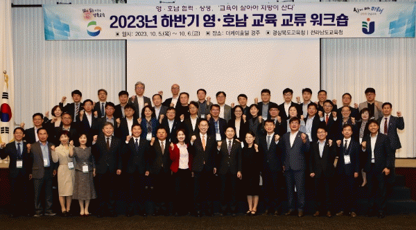 [¹Ìµð¾îÀü³² °í±Ô¼® ±âÀÚ]Àü¶ó³²µµ±³À°Ã»°ú °æ»óºÏµµ±³À°Ã»ÀÌ 10¿ù 5~6ÀÏ °æºÏ °æÁÖ ´õÄÉÀÌÈ£ÅÚ¿¡¼ ¡®2023³â ÇϹݱ⠿µÈ£³² ±³À° ±³·ù¡¯¸¦ °¡Á³´Ù. À̹ø ±³·ù´Â Áö³ 4¿ù Àü³² ¿©¼ö¿¡¼ °¡Áø¡®¿µ¡¤È£³² ±³À°ÁöµµÀÚ ¿öÅ©¼ó¡¯ ÀÌÈÄ ¿ÃÇØ ¡¦