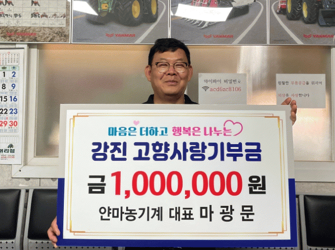 [¹Ìµð¾îÀü³² °í±Ô¼® ±âÀÚ]¾á¸¶³ó±â°è ¸¶±¤¹® ´ëÇ¥°¡ °íÇâ»ç¶û±âºÎÁ¦·Î °Áø±º¿¡ »ç¶ûÀÇ ¸¶À½À» ÀüÇß´Ù. °Áø±ºÀº ÃÖ±Ù ¾á¸¶³ó±â°è ¸¶±¤¹® ´ëÇ¥°¡ °Áø±º¿¡ °íÇâ»ç¶û±âºÎ±Ý 100¸¸ ¿øÀ» ±âŹÇß´Ù°í 5ÀÏ ¹àÇû´Ù. ¸¶±¤¹® ´ëÇ¥´Â ÀåÈï °ü»êÀ¾¡¦