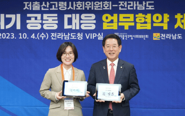 [¹Ìµð¾îÀü³² Á¦°¥´ëÁ¾ ±âÀÚ]Àü¶ó³²µµ´Â 4ÀÏ µµÃ» Á¢°ß½Ç¿¡¼ ´ëÅë·ÉÁ÷¼Ó ÀúÃâ»ê°í·É»çȸÀ§¿øÈ¸¿Í À¯±âÀû Çù·ÂÀ» ÅëÇØ Áö¿ª ½ÇÁ¤¿¡ ¸Â´Â ÀúÃâ»ê¡¤°í·ÉÈ ½ÃÃ¥À» ¸¶·ÃÇØ ÃßÁøÇϱâ À§ÇÑ ¾÷¹«Çù¾àÀ» Çß´Ù. ¾÷¹«Çù¾à½Ä¿¡¼± ±è¿µ·Ï Àü³²µµÁö»ç¡¦