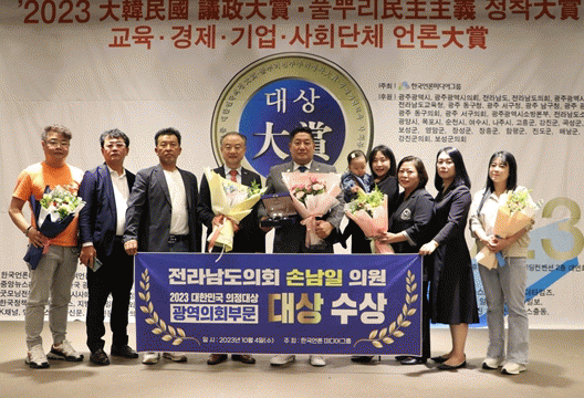 [¹Ìµð¾îÀü³² Á¦°¥´ëÁ¾ ±âÀÚ]Àü³²µµÀÇȸ ¼Õ³²ÀÏ µµÀÇ¿ø(´õºÒ¾î¹ÎÁִ硤¿µ¾Ï2)ÀÌ 4ÀÏ ¿¸° Çѱ¹¾ð·Ð¹Ìµð¾î±×·ì 7Áֳ⠱â³ä½Ä¿¡¼ ¡®2023 ´ëÇѹα¹ ÀÇÁ¤´ë»ó(±¤¿ªÀÇȸ ºÎ¹®)¡¯À» ¼ö»óÇß´Ù. ¡®´ëÇѹα¹ ÀÇÁ¤´ë»ó¡¯Àº Áö¿ª Ư¼º¿¡ ¸Â´Â µµ¹Î¹Ð¡¦