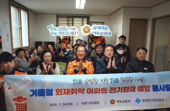 [¹Ìµð¾îÀü³² ÀüÇü¼º ±âÀÚ] ¿©¼ö¼Ò¹æ¼´Â 1¿ù 14ÀÏ, ¿©¼ö½Ã ¿©¼µ¿¿¡ À§Ä¡ÇÑ ºÎ¿µ7Â÷¾ÆÆÄÆ®¿¡¼ Çѱ¹Àü±â¾ÈÀü°ø»ç ¿©¼öÁö»ç¿Í ÇÔ²² ÀÚµ¿¼ÒÈ¸ÖÆ¼ÅÇ ±âÁõ½Ä ¹× ÈÀç ¿¹¹æ ÇÕµ¿ ¾ÈÀü Ȱµ¿À» ½Ç½ÃÇß´Ù. À̹ø Çà»ç´Â Àü±â½Ã¼³ ³ëÈÄ·Î ÈÀç À§¡¦