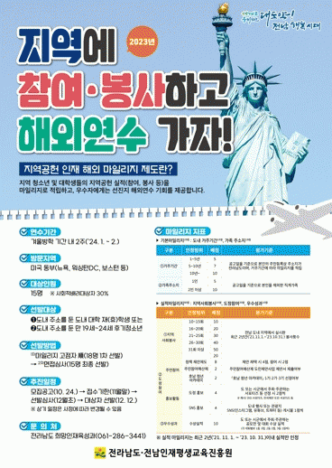 [¹Ìµð¾îÀü³² Á¦°¥´ëÁ¾ ±âÀÚ]Àü¶ó³²µµ´Â ´ëÇлý°ú û¼Ò³âÀÇ Áö¿ª»çȸ ºÀ»ç¡¤Âü¿© Ȱµ¿À» Àå·ÁÇϱâ À§ÇØ ¡®Áö¿ª °øÇå ÀÎÀç ÇØ¿Ü ¸¶Àϸ®Áö¡¯ »ç¾÷À» ¿ÃÇØ ½Å±Ô·Î ÃßÁøÇÑ´Ù°í ¹àÇû´Ù. Áö¿ª °øÇå ÀÎÀç ÇØ¿Ü ¸¶Àϸ®Áö »ç¾÷Àº Àü³²µµ°¡ 2019³âºÎ¡¦