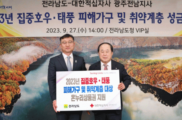 [¹Ìµð¾îÀü³² Á¦°¥´ëÁ¾ ±âÀÚ]Àü¶ó³²µµ´Â 27ÀÏ ´ëÇÑÀû½ÊÀÚ»ç ±¤ÁÖÀü³²Áö»ç·ÎºÎÅÍ ÁýÁßÈ£¿ì ¹× ÅÂdz ÇÇÇØ °¡±¸¿Í Ãë¾à°èÃþÀ» À§ÇÑ ¼º±ÝÀ¸·Î ÃÑ 7õ900¸¸ ¿ø »ó´çÀ» ±âŹ¹Þ¾Ò´Ù°í ¹àÇû´Ù. Àü´Þ½ÄÀº À̳¯ ¿ÀÈÄ Àü³²µµÃ»¿¡¼ ¸íâȯ Àü³²µµ Çࡦ