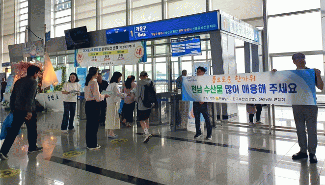 [¹Ìµð¾îÀü³² Á¦°¥´ëÁ¾ ±âÀÚ]Àü¶ó³²µµ´Â 27ÀÏ ¹ÎÁ· ´ë¸íÀý Ãß¼®À» ¸Â¾Æ ¼ö»ê¹° ¼Òºñ Ȱ¼ºÈ¸¦ À§ÇÑ ¼ö»ê¹° ¼Òºñ ÃËÁø Ä·ÆäÀÎÀ» ÆîÃÆ´Ù. À̹ø Ä·ÆäÀÎÀº ¸ñÆ÷¿ª°ú ¿©°´¼±Å͹̳ο¡¼ ÁøÇàµÆÀ¸¸ç, °íÇâÀ» ãÀº ±Í¼º°´°ú ½Ã¹Îµé¿¡°Ô Àü³² ¼ö¡¦
