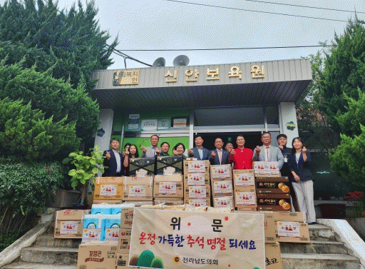 [¹Ìµð¾îÀü³² Á¦°¥´ëÁ¾ ±âÀÚ]Àü³²µµÀÇȸ ±è¹®¼ö ÀÇ¿ø(½Å¾È1¤ý¹ÎÁÖ´ç)ÀÌ 9¿ù 25ÀÏ Ãß¼®À» ¸Â¾Æ ½Å¾È±º ¼ÒÀç ¾Æµ¿º¹Áö½Ã¼³ÀÎ ½Å¾Èº¸À°¿øÀ» ¹æ¹®ÇØ ÇÊ¿äÇÑ ¹°Ç°À» Àü´ÞÇÏ°í ¿ÂÁ¤À» ³ª´©´Â ¶æ±íÀº ½Ã°£À» °¡Á³´Ù. ½Å¾Èº¸À°¿øÀº 1930³â ÀÏÁ¦ °¡¦