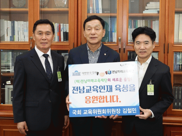 [¹Ìµð¾îÀü³² Á¦°¥´ëÁ¾ ±âÀÚ]±èö¹Î ±¹È¸ ±³À°À§¿øÀ§¿øÈ¸ À§¿øÀåÀÌ Áö³ 18ÀÏ (Àç)Àü³²¹Ì·¡±³À°Àç´Ü¿¡ ¼ÒÁ¤ÀÇ ÀåÇбݰú ÀÀ¿øÀÇ ¸Þ½ÃÁö¸¦ Àü´ÞÇß´Ù. ±èö¹Î À§¿øÀåÀº À̳¯ ±¹È¸ ±³À°À§¿øÀå½Ç¿¡¼ ±è´ëÁß ÀÌ»çÀåÀ» ¸¸³ª ÀåÇбݰú ÇÔ²² ¡°Àü¡¦