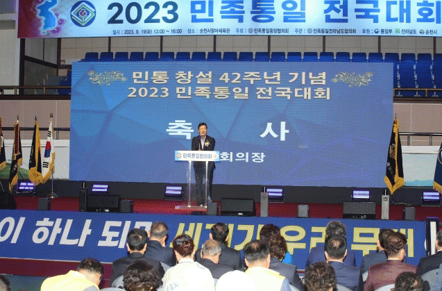 [¹Ìµð¾îÀü³² Á¦°¥´ëÁ¾ ±âÀÚ]Àü¶ó³²µµÀÇȸ ¼µ¿¿í ÀÇÀåÀº 19ÀÏ ¼øÃµ ÆÈ¸¶½Ç³»Ã¼À°°ü¿¡¼ ¿¸° ¡®2023 ¹ÎÁ·ÅëÀÏÇùÀÇȸ Àü±¹´ëȸ¡¯¿¡ Âü¼®Çß´Ù. ¹ÎÁ·ÅëÀÏÇùÀÇȸ â¼³ 42ÁÖ³âÀ» ±â³äÇØ ¿¸° À̳¯ Çà»ç¿¡´Â ±èÃß±æ ¹ÎÁ·ÅëÀÏÀü¶ó³²µµÇùÀÇȸÀåÀ»¡¦