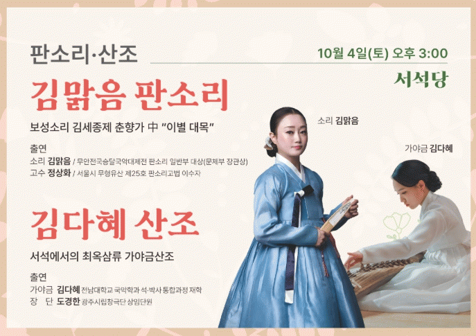 [¹Ìµð¾îÀü³² Á¦°¥´ëÁ¾ ±âÀÚ]±¤ÁÖ¹®ÈÀç´Ü ÀüÅ빮ȰüÀº ¿À´Â 10¿ù 4ÀÏ ¿ÀÈÄ 3½Ã, Á¦21ȸÂ÷ Åä¿ä»ó¼³°ø¿¬À» ¼±º¸ÀδÙ. ù ¹«´ë´Â °¡¾ß±Ý ¿¬ÁÖÀÚ ±è´ÙÇýÀÇ 'ÃÖ¿Á»ï·ù °¡¾ß±Ý»êÁ¶' ¿¬ÁÖ°¡ ÆîÃÄÁø´Ù. ¹«µî»êÀÇ ±í°í ³ÐÀº °ø±â ¼Ó¿¡¼ ¿ï·Á¡¦
