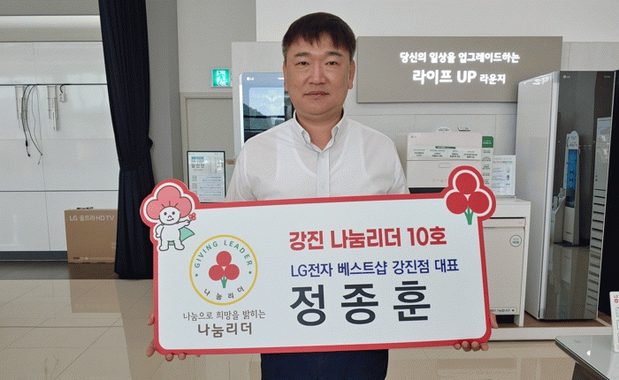 [¹Ìµð¾îÀü³² °í±Ô¼® ±âÀÚ]LGÀüÀÚ º£½ºÆ®¼¥ °ÁøÁ¡ Á¤Á¾ÈÆ ´ëÇ¥°¡ ÃÖ±Ù ¡®220ÀÎÀÇ ³ª´®¸®´õ ¸±·¹ÀÌ Ä·ÆäÀΡ¯¿¡ Âü¿©ÇØ °Áø±º ³ª´®¸®´õ 10È£°¡ µÆ´Ù. Á¤Á¾ÈÆ ´ëÇ¥´Â 2021³â °Áø»ç¶û»óǰ±Ç 200¸¸¿ø°ú ¶ó¸é 150»óÀÚ, 2023³â Àü±â¸ÅÆ® 20°³¡¦