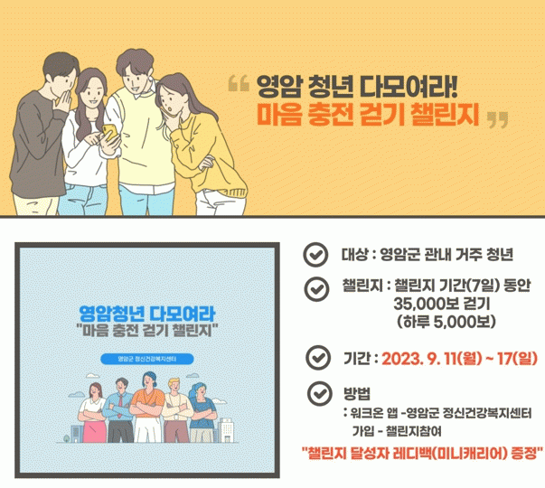 [¹Ìµð¾îÀü³² Á¦°¥´ëÁ¾ ±âÀÚ]¿µ¾Ï±ºÀÌ 10ÀÏ ÀÚ»ì ¿¹¹æÀÇ ³¯À» ¸Â¾Æ 11ÀϺÎÅÍ 17ÀϱîÁö ¡®Ã»³â ¸¶À½ ÃæÀü °È±â 縰Áö¡¯¸¦ ÁøÇàÇÑ´Ù. û³âÀÌ Ã§¸°Áö¿¡ Âü°¡ÇØ Ãʰ¡À» ½Å¼±ÇÑ ¹Ù¶÷°ú ÇÞºµÀ» ÂØ¸ç °ÉÀ¸¸é, 1°ÉÀ½´ç 1¸¶Àϸ®Áö, ÇÏ·ç ÃÖ´ë ¡¦
