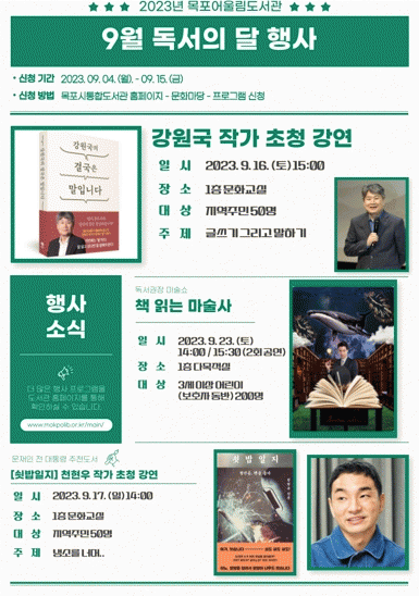 [¹Ìµð¾îÀü³² °í±Ô¼® ±âÀÚ]¸ñÆ÷¾î¿ï¸²µµ¼°üÀÌ 2023³â µ¶¼ÀÇ ´Þ Çà»çÀÇ ÀÏȯÀ¸·Î ÀÛ°¡ ÃÊû °¿¬À» ½Ã¹Î 100¿©¸íÀ» ´ë»óÀ¸·Î ÁøÇàÇÒ °èȹÀÌ´Ù. ¿À´Â 16ÀÏ, ´ëÅë·É ¿¬¼³ºñ¼°ü Ãâ½ÅÀ¸·Î '´ëÅë·ÉÀÇ ±Û ¾²±â', '°¿ø±¹ÀÇ ¾î¸¥´ä°Ô ¸»ÇÕ´Ï´Ù¡¦