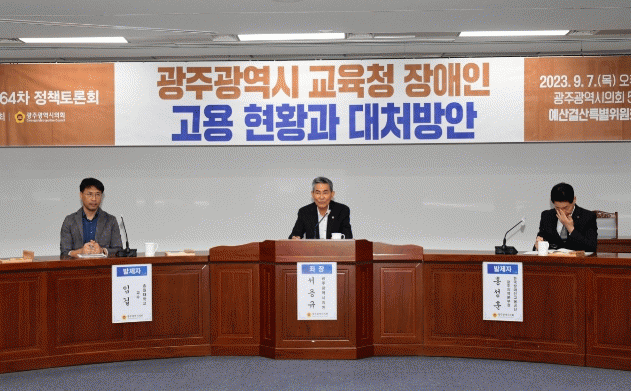 [¹Ìµð¾îÀü³² Á¦°¥´ëÁ¾ ±âÀÚ]±¤ÁÖ±¤¿ª½ÃÀÇȸ´Â 7ÀÏ ¿ÀÈÄ 2½Ã ½ÃÀÇȸ 5Ãþ ¿¹°áÀ§ ȸÀǽǿ¡¼ ¡®±¤Áֽà ±³À°Ã» Àå¾ÖÀÎ °í¿ëÇöȲ ¹× ´ëó ¹æ¾È¡¯ À̶ó´Â ÁÖÁ¦·Î Á¤Ã¥Åä·Ðȸ¸¦ °³ÃÖÇß´Ù. À̹ø Åä·Ðȸ´Â ±¤Áֽà ±³À°Ã»ÀÇ Àå¾ÖÀÎ Àǹ«°í¿ëÀ» ½Ç¡¦