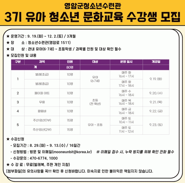 [¹Ìµð¾îÀü³² Á¦°¥´ëÁ¾ ±âÀÚ]¿µ¾Ï±ºÀÌ ÀÌ´Þ 13ÀϱîÁö ¡®3±â À¯¾Æ¡¤Ã»¼Ò³â ¹®È±³À°¡¯ ¼ö°»ýÀ» ¸ðÁýÇÑ´Ù. 9¿ù19À̺ÎÅÍ 12¿ù2ÀϱîÁö ÀÏÁ¤À¸·Î û¼Ò³â¼ö·Ã°ü¿¡¼ ÁøÇàµÇ´Â À̹ø ¹®È±³À°Àº, À¯¾ÆºÎÅÍ Ã»¼Ò³â±îÁö ´Ù¾çÇÑ ¿¬·É´ëÀÇ ¾ÆÀ̵éÀÌ¡¦