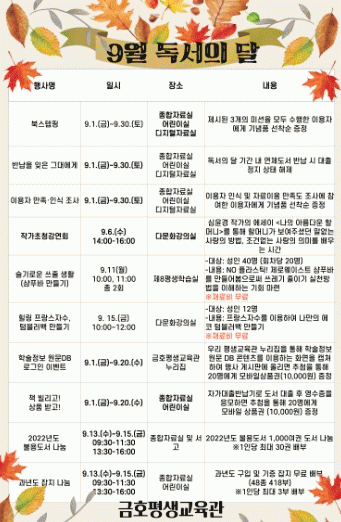 [¹Ìµð¾îÀü³² Á¦°¥´ëÁ¾ ±âÀÚ]±ÝÈ£Æò»ý±³À°¿øÀÌ 9¿ù µ¶¼ÀÇ ´ÞÀ» ¸Â¾Æ ´Ùä·Î¿î µ¶¼ Çà»ç¸¦ ÁøÇàÇÑ´Ù°í 5ÀÏ ¹àÇû´Ù. À̹ø Çà»ç´Â °¿¬, üÇèÇü Çà»ç, ¿Â¡¤¿ÀÇÁ¶óÀÎ °æÇ° À̺¥Æ®, ³ª´® Çà»ç, Àü½Ã µî ´Ù¾çÇϰí dz¼ºÇÑ Áñ±æ °Å¸®·Î ±¸¼ºµÆ¡¦