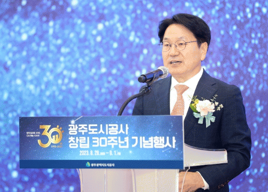 [¹Ìµð¾îÀü³² Á¦°¥´ëÁ¾ ±âÀÚ]°±âÁ¤ ±¤ÁÖ±¤¿ª½ÃÀåÀº 1ÀÏ ±¤ÁÖµµ½Ã°ø»ç ⸳ 30ÁÖ³âÀ» ¸Â¾Æ ¡°»õ·Î¿î 100³âÀ» ¹Ù¶óº¸¸ç ÀÌÁ¦´Â ¡®³»ÀÏÀÇ µµ½Ã¡¯¸¦ ±×·Á¾ß ÇÒ ¶§¡±¶ó°í °Á¶Çß´Ù. ° ½ÃÀåÀº À̳¯ ±¤ÁÖµµ½Ã°ø»ç¿¡¼ ¿¸° ⸳ 30Áֳ⠱â³ä½Ä¡¦