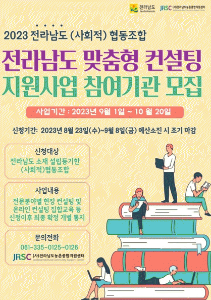 [¹Ìµð¾îÀü³² Á¦°¥´ëÁ¾ ±âÀÚ]Àü¶ó³²µµ´Â ¿À´Â 8ÀϱîÁö µµ³» Çùµ¿Á¶ÇÕ, »çȸÀû Çùµ¿Á¶ÇÕÀ» ´ë»óÀ¸·Î ¡®2023³â Çùµ¿Á¶ÇÕ ¸ÂÃãÇü ÄÁ¼³ÆÃ Áö¿ø»ç¾÷¡¯ Âü¿©±â°üÀ» ¸ðÁýÇÑ´Ù. 2022³â 12¿ù ±âÁØ µµ³» Çùµ¿Á¶ÇÕÀº ÃÑ 1õ 411°³·Î ´ëºÎºÐÀÌ ¼Ò±Ô¸ð¡¦