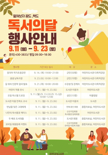 [¹Ìµð¾îÀü³² Á¦°¥´ëÁ¾ ±âÀÚ] ¡®9¿ù µ¶¼ÀÇ ´Þ¡¯À» ¸Â¾Æ °Áø±ºµµ¼°üÀÌ ¿À´Â 9¿ù 11ÀϺÎÅÍ 23ÀϱîÁö °Áø±º¹ÎÀ» À§ÇÑ ´Ù¾çÇÑ µ¶¼¹®ÈÇà»ç¸¦ ¿î¿µÇÑ´Ù. µ¶¼ÀÇ ´ÞÀº ±¹¹ÎÀÇ µ¶¼ ÀÇ¿åÀ» °íÃëÇÏ°í µ¶¼ÀÇ »ýȰȸ¦ À¯µµÇØ °ÇÀüÇÑ µ¶¼¹®È¡¦