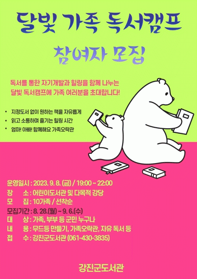 [¹Ìµð¾îÀü³² Á¦°¥´ëÁ¾ ±âÀÚ]°Áø±ºµµ¼°üÀÌ °¡Á·ÀÌ ÇÔ²²ÇÏ´Â ¡®´Þºû µ¶¼Ä·ÇÁ¡¯¸¦ ¿î¿µÇÑ´Ù°í 28ÀÏ ¹àÇû´Ù. 2023³â ´Þºû µ¶¼Ä·ÇÁ´Â ´Ù°¡¿À´Â µ¶¼ÀÇ °èÀý, °¡À»À» ¸Â¾Æ Ã¥À» ÅëÇØ µ¶¼¿¡ ´ëÇÑ Èï¹Ì¸¦ ³ôÀÌ°í °¡Á·°úÀÇ ¼ÒÅë ±×¸®°í Ã¥ ¸¹¡¦