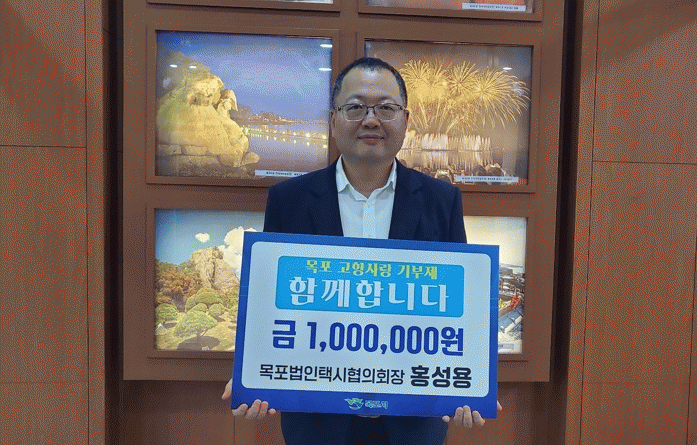 [¹Ìµð¾îÀü³² °í±Ô¼® ±âÀÚ]¸ñÆ÷½Ã´Â ¸ñÆ÷¹ýÀÎÅýÃÇùÀÇȸ È«¼º¿ë ȸÀåÀÌ °íÇâ»ç¶û±âºÎ±Ý 100¸¸¿øÀ» ±âŹÇß´Ù°í 24ÀÏ ¹àÇû´Ù. ¹«¾È±º¿¡ °ÅÁÖÇÏ´Â È«¼º¿ë ȸÀåÀº °íÇâ ¸ñÆ÷¿¡¼ ÃÊÁß°í¸¦ Á¹¾÷Çϰí ÇöÀç ¸ñÆ÷¹ýÀÎÅýÃÇùÀÇȸÀå, ¸ñÆ÷Áß¾Ó±³Åë ¡¦