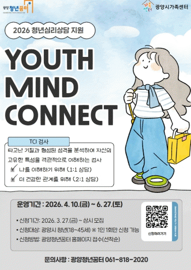 [¹Ìµð¾îÀü³² ÀÓ¼º¿Ï ±âÀÚ]±¤¾ç½Ã´Â ¿À´Â 27ÀϺÎÅÍ Ã»³âÀÇ Á¤¼ ¾ÈÁ¤°ú °Ç°ÇÑ °ü°è Çü¼ºÀ» Áö¿øÇϱâ À§ÇØ ½É¸®»ó´ã ÇÁ·Î±×·¥ 'YOUTH MIND CONNECT' Âü¿©ÀÚ¸¦ ¸ðÁýÇÑ´Ù°í ¹àÇû´Ù. À̹ø »ç¾÷Àº û³âÀÇ ¸¶À½°Ç° ȸº¹°ú ÀÚ±âÀÌÇØ ÁõÁøÀ» ÅëÇØ¡¦