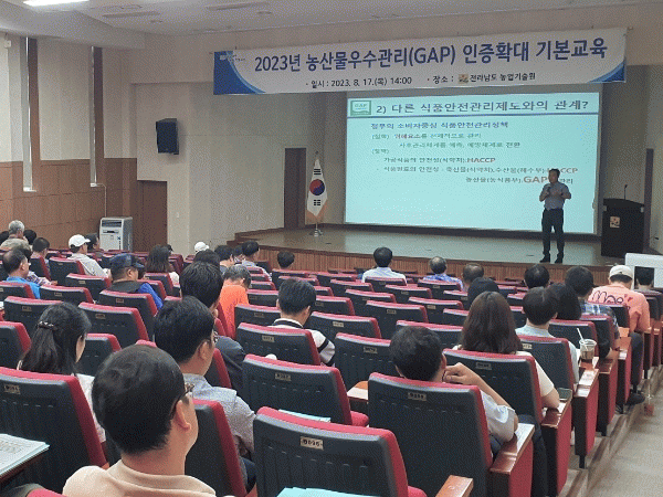 [¹Ìµð¾îÀü³² Á¦°¥´ëÁ¾ ±âÀÚ]Àü¶ó³²µµ´Â ³ó»ê¹°¿ì¼ö°ü¸®(GAP) ÀÎÁõÀ» ÅëÇÑ ¾ÈÀü ³ó»ê¹° °ø±Þ ¹× À¯Åë Ȱ¼ºÈ¸¦ À§ÇØ ³ó¾÷Àΰú ½Ã±º °ø¹«¿øÀ» ´ë»óÀ¸·Î Áö³ 17ÀÏ Àü³²³ó¾÷±â¼ú¿ø¿¡¼ ÀÎÁõÈ®´ë ±³À°À» Çß´Ù. ¿ÃÇØ ÀÎÁõ ¸ñÇ¥´Â 1¸¸ 4õ540³ó¡¦