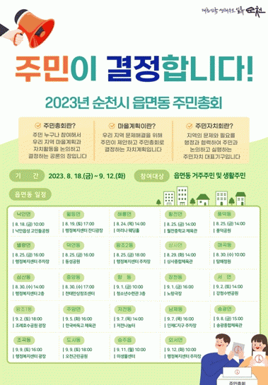 [¹Ìµð¾îÀü³² ÀÓ¼º¿Ï ±âÀÚ]¼øÃµ½Ã°¡ 18ÀϺÎÅÍ ´ÙÀ½ ´Þ 12ÀϱîÁö 24°³ À¾¸éµ¿¿¡¼ ³»³âµµ ¸¶À»»ç¾÷À» °áÁ¤ÇÏ´Â ÁÖ¹ÎÃÑȸ¸¦ °³ÃÖÇÑ´Ù°í ¹àÇû´Ù. ÁÖ¹ÎÃÑȸ´Â ¸¶À» ÁֹεéÀÌ ÇÑÀÚ¸®¿¡ ¸ð¿© ³»³âµµ ¸¶À»»ç¾÷À» ³íÀÇÇÏ°í °áÁ¤ÇÏ´Â ÃÖ°í Àǰá±â±¸¡¦