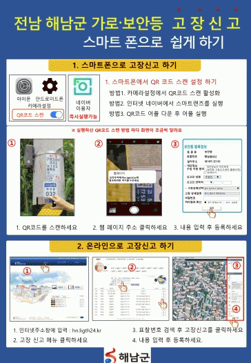 [¹Ìµð¾îÀü³² Á¦°¥´ëÁ¾ ±âÀÚ]ÇØ³²±ºÀº °ü³» 1¸¸5,000¿©°³ °¡·Îµî ¹× º¸¾Èµî¿¡ ´ëÇØ QRÄڵ尡 Æ÷ÇÔµÈ °ü¸®¹øÈ£ Ç¥ÂûÀ» ºÎÂøÇϰí, GPS ÁÂÇ¥ Á¤º¸·Î QRÄÚµå °íÀå ½Å°í°¡ °¡´ÉÇÑ µµ·ÎÁ¶¸í °ü¸®½Ã½ºÅÛÀ» ±¸ÃàÇß´Ù. °¡·Îµî°ú º¸¾ÈµîÀÇ °æ¿ì ±º¹Î¡¦