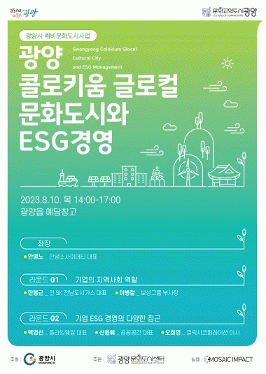 [¹Ìµð¾îÀü³² ÀÓ¼º¿Ï ±âÀÚ]±¤¾ç½Ã(±¤¾ç¹®Èµµ½Ã¼¾ÅÍ)´Â ¿À´Â 10ÀÏ ¡®Á¦2ȸ µµ½Ã °£ ÄÝ·ÎŰ¿ò¡¯À» °³ÃÖÇÑ´Ù. ¡®µµ½Ã °£ ÄÝ·ÎŰ¿ò¡¯Àº ¹®Èµµ½Ã ½Ã¹ÎÇùÀÇüÀÎ ¡®±¤¾ç½Ã¹Î¿øÅ¹¡¯ÀÇ °øµ¿ ÇнÀÀÇ ÀåÀ¸·Î ¸¶·ÃµÆÀ¸¸ç ¡®Áö¿ª»çȸ¿Í ±â¾÷ ESG°æ¿µ¡¦
