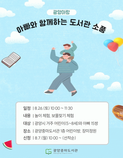 [¹Ìµð¾îÀü³² ÀÓ¼º¿Ï ±âÀÚ]±¤¾çÁ߸¶µµ¼°üÀÌ 2023 ±¤¾ç¾Æ¶û ÇÁ·Î±×·¥ÀÇ ÀÏȯÀ¸·Î ¿î¿µÇÏ´Â ¡®¾Æºü¿Í ÇÔ²²ÇÏ´Â µµ¼°ü ¼Òdz¡¯ÀÇ Âü¿©ÀÚ¸¦ ¸ðÁýÇÑ´Ù. 5~8¼¼ À¯¾Æ¿Í ¾Æºü 15½ÖÀ» ´ë»óÀ¸·Î ÇÏ´Â À̹ø ÇÁ·Î±×·¥Àº ¿À´Â 26ÀÏ ¿ÀÀü 10½ÃºÎÅÍ 11½Ã¡¦