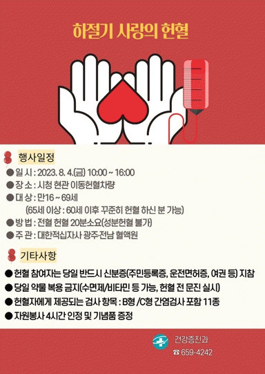 [¹Ìµð¾îÀü³² ÀüÇü¼º ±âÀÚ]¿©¼ö½Ã´Â ¿À´Â 4ÀÏ Áö¿ªÁֹΰú Á÷¿øµéÀ» ´ë»óÀ¸·Î º»Ã»»ç¿Í ±¹µ¿Àӽú°°ü¿¡¼ ÇåÇ÷¹ö½º¸¦ ÀÌ¿ëÇÑ ¡®»ý¸í³ª´® »ç¶ûÀÇ ÇåÇ÷¡¯ Ȱµ¿À» ÆîÄ£´Ù. ¿ÃÇØ µé¾î ¼¼ ¹øÂ°ÀÎ À̹ø ÇåÇ÷ Çà»ç´Â Çϰè ÈÞ°¡ ¹× ¹æÇÐÀ¸·Î ÀÎÇÑ ¡¦