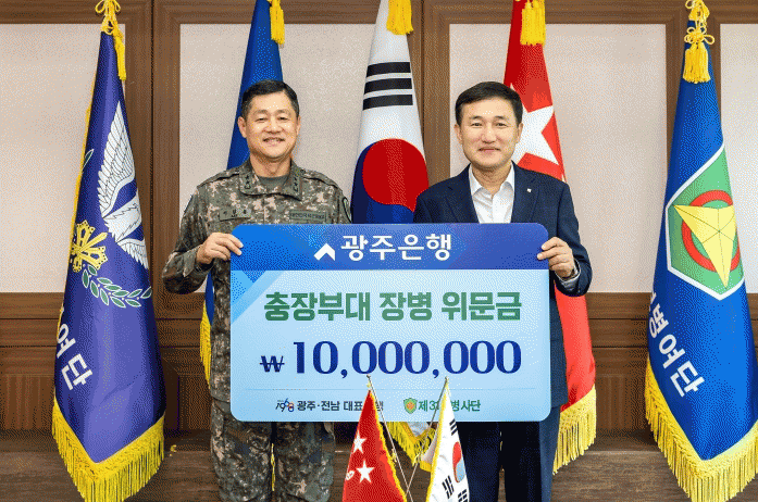 [¹Ìµð¾îÀü³² Á¦°¥´ëÁ¾ ±âÀÚ] ±¤ÁÖÀºÇàÀº 26ÀÏ, 77Áֳ⠱¹±ºÀÇ ³¯À» ¾ÕµÎ°í Áö¿ª¹æÀ§ Ã¥ÀÓ»ç´ÜÀÎ Á¦31º¸º´»ç´Ü(»ç´ÜÀå ÀÌÀÏ¿ë)À» ¹æ¹®ÇØ À§¹®±Ý 1õ¸¸¿øÀ» Àü´ÞÇϰí À庴µéÀ» °Ý·ÁÇß´Ù°í ¹àÇû´Ù. À̳¯ Àü´Þ½Ä¿¡´Â °íº´ÀÏ ±¤ÁÖÀºÇàÀå, ÀÌ¡¦