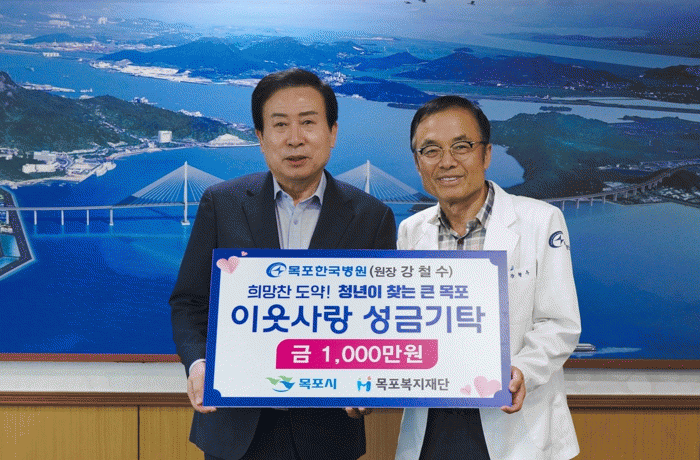 [¹Ìµð¾îÀü³² °í±Ô¼® ±âÀÚ]¸ñÆ÷Çѱ¹º´¿ø °Ã¶¼ö ¿øÀåÀÌ Áö³ 25ÀÏ ÀÌ¿ô»ç¶û ¼º±Ý 1,000¸¸¿øÀ» ¸ñÆ÷º¹ÁöÀç´Ü¿¡ ±âŹÇß´Ù. °Ã¶¼ö ¿øÀåÀº Æò¼Ò »ç¶û°ú ³ª´®¹®È¸¦ ¸ö¼Ò ½ÇõÇϰí ÀÖÀ¸¸ç ÀÛ³â 8¿ù¿¡µµ 1,000¸¸¿øÀ» ±âŹ ÇÏ´Â µî, Âü!ÁÁÀº »ç¡¦