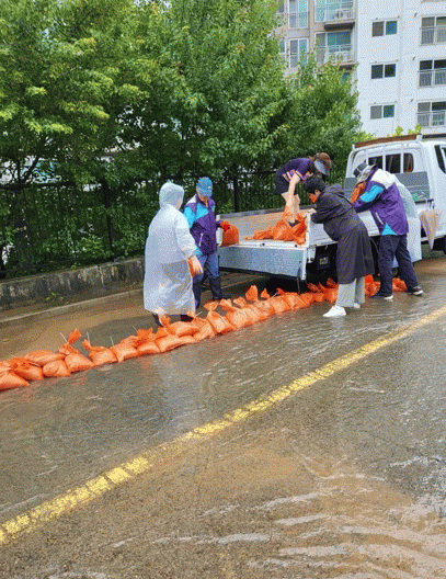 [¹Ìµð¾îÀü³² ÀÓ¼º¿Ï ±âÀÚ]¼øÃµ½Ã´Â ÁÖÅÃ, »ó°¡ µî ħ¼ö¿¹¹æÀ» À§ÇØ 5,000°³¸¦ Á¦ÀÛÇØ ¹èÆ÷ÇÑ ¼öÇØ ¹æÁö¿ë ¸ð·¡ÁָӴϰ¡ À̹ø È£¿ì¿¡ ¿ä±äÇÏ°Ô »ç¿ëµÆ´Ù°í ¹àÇû´Ù. ½Ã´Â ÀúÁö´ë ÁÖÅÃÁö, ÁöÇÏ ½Ã¼³¹°ÀÌ ÀÖ´Â °øµ¿ÁÖÅà µî¿¡ ¸ð·¡ÁָӴϸ¦ ¹è¡¦